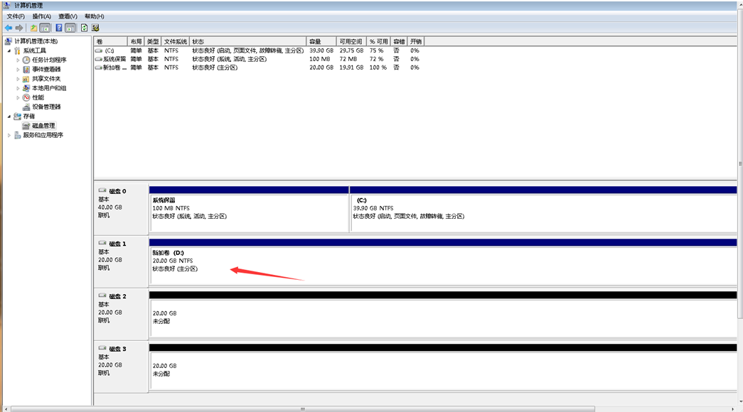 例如我有一个网站,只有一个D盘,由于数据量增大,容量开始不足,现在需要扩充,升级硬盘后: